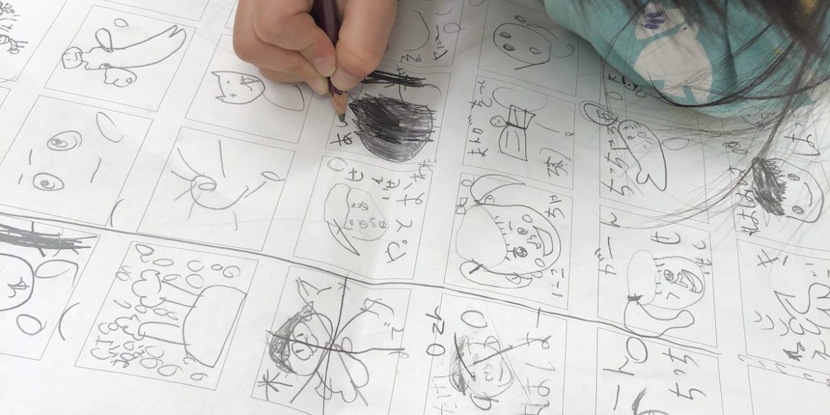 LINEスタンプは今日で最後になります。今まで描いてきたイラストを、きちんとマス目に入るように配置し、セリフも入れます。